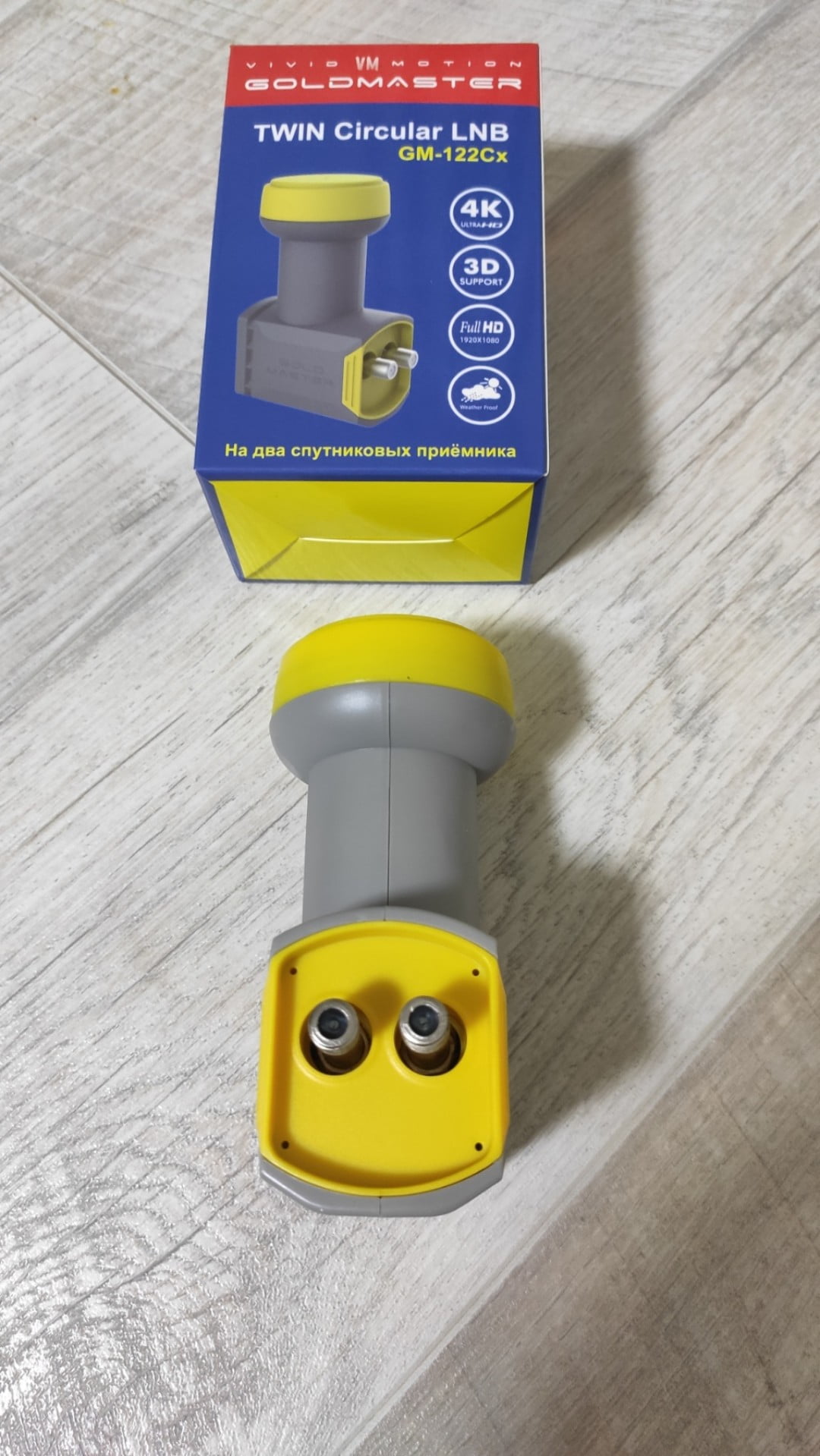 GoldMaster GM-122Cx (круговой Ku конвертор) отличается от модели GoldMaster GM-122C применением более современной элементной базы, в результате чего у него улучшены основные рабочие параметры, а также повышена эксплуатационная стабильность. Устанавливается для независимого приема сигналов в круговой поляризации со спутника на два отдельных спутниковых ресивера или двухтюнерный вариант ресивера. Конвертор работает только в верхнем Ku диапазоне и подходит для приема каналов операторов: НТВ Плюс, НТВ Плюс Восток, НТВ Плюс Дальний Восток, Триколор ТВ и Триколор ТВ Сибирь. Неприхотлив и надежен в эксплуатации, при этом он обладает влагозащищенным корпусом.