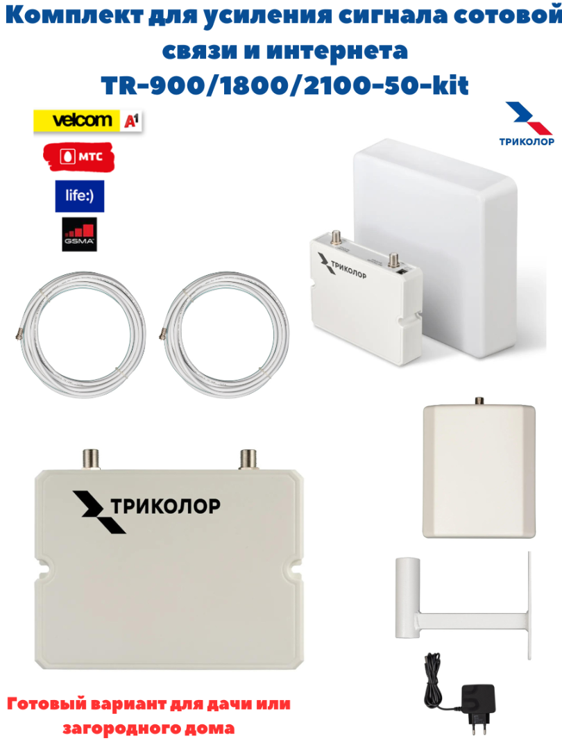Усилитель сигнала мобильной связи. Все три диапазона 2G/3G/4G и голосовая связь Отлично подойдет для дачи и загородного дома.Цокольных и подвальных помещениий. Готовый комплект для самостоятельной установки. Комплект предназначен для усиления сигнала мобильного интернета и голосовой мобильной связи Приемная антенна, установленная на улице, балконе или лоджии, передает сигнал по кабелю на репитер сотовой связи. Слабый сигнал с улицы усиливается и распространяется в помещении внутренней антенной. Заменяет два комплекта. Усиление до 70 дБ. Готовое решение в одной коробке. Простая и быстрая установка. Автоматическая регулировка усиления. Площадь покрытия - до 150 кв. м.