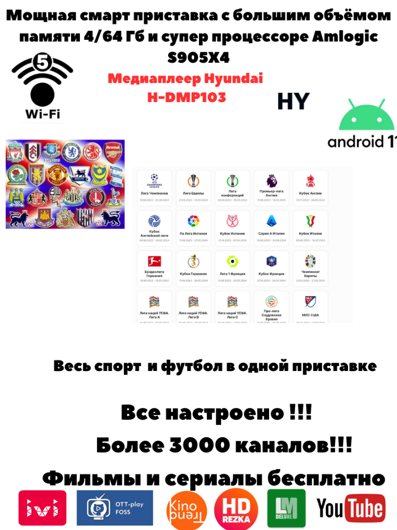 Представляем Hyundai H-DMP103 – смарт ТВ приставку, созданную для тех, кто ценит качество, простоту и мощь. Прошивка Slimbox, разработанная специально для этой модели, обеспечивает невероятную производительность и расширенный функционал, делая просмотр ТВ и контента максимально удобным и увлекательным.