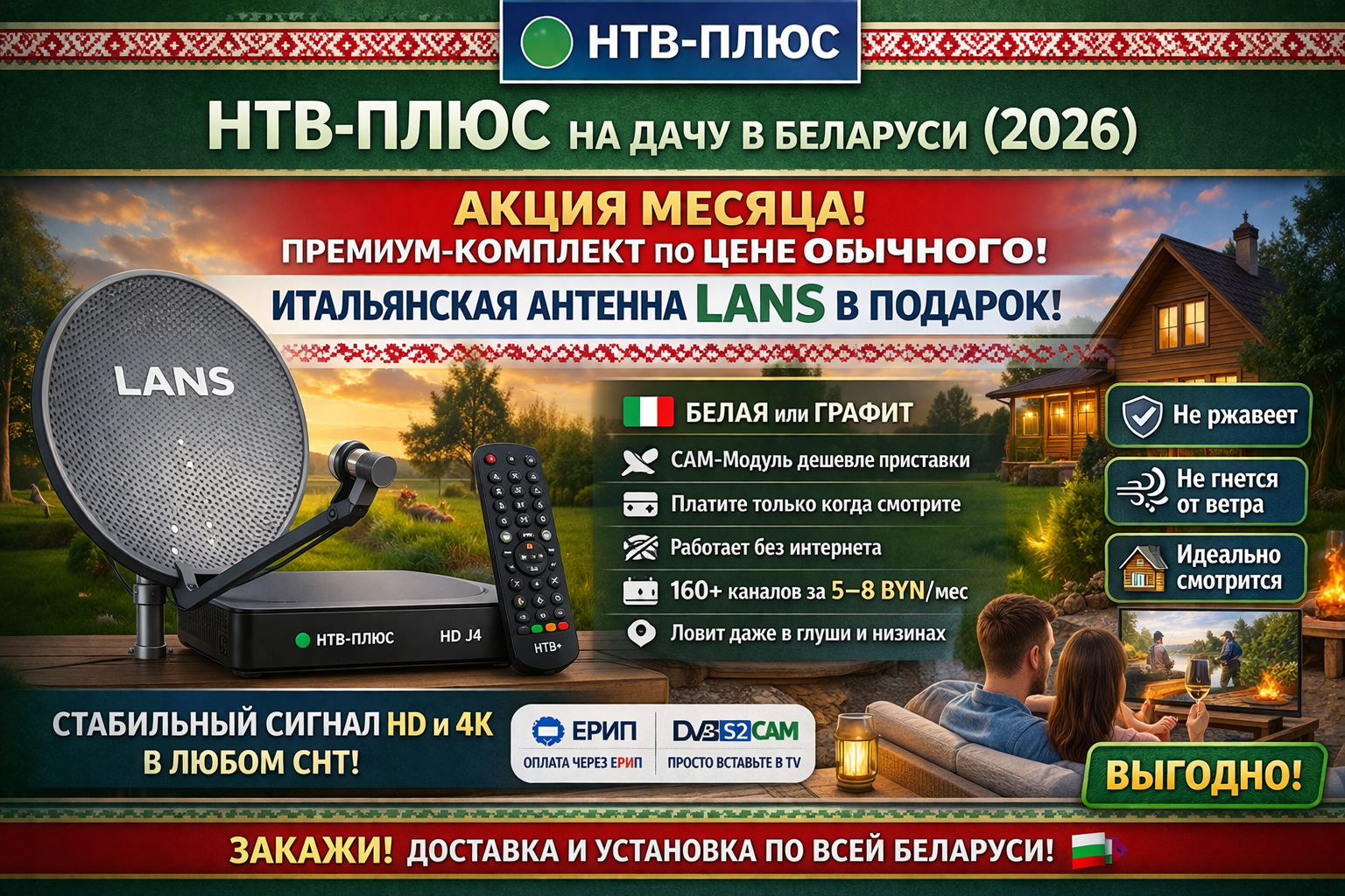 НТВ-ПЛЮС на дачу 2026: Год ТВ в подарок и итальянская антенна LANS!