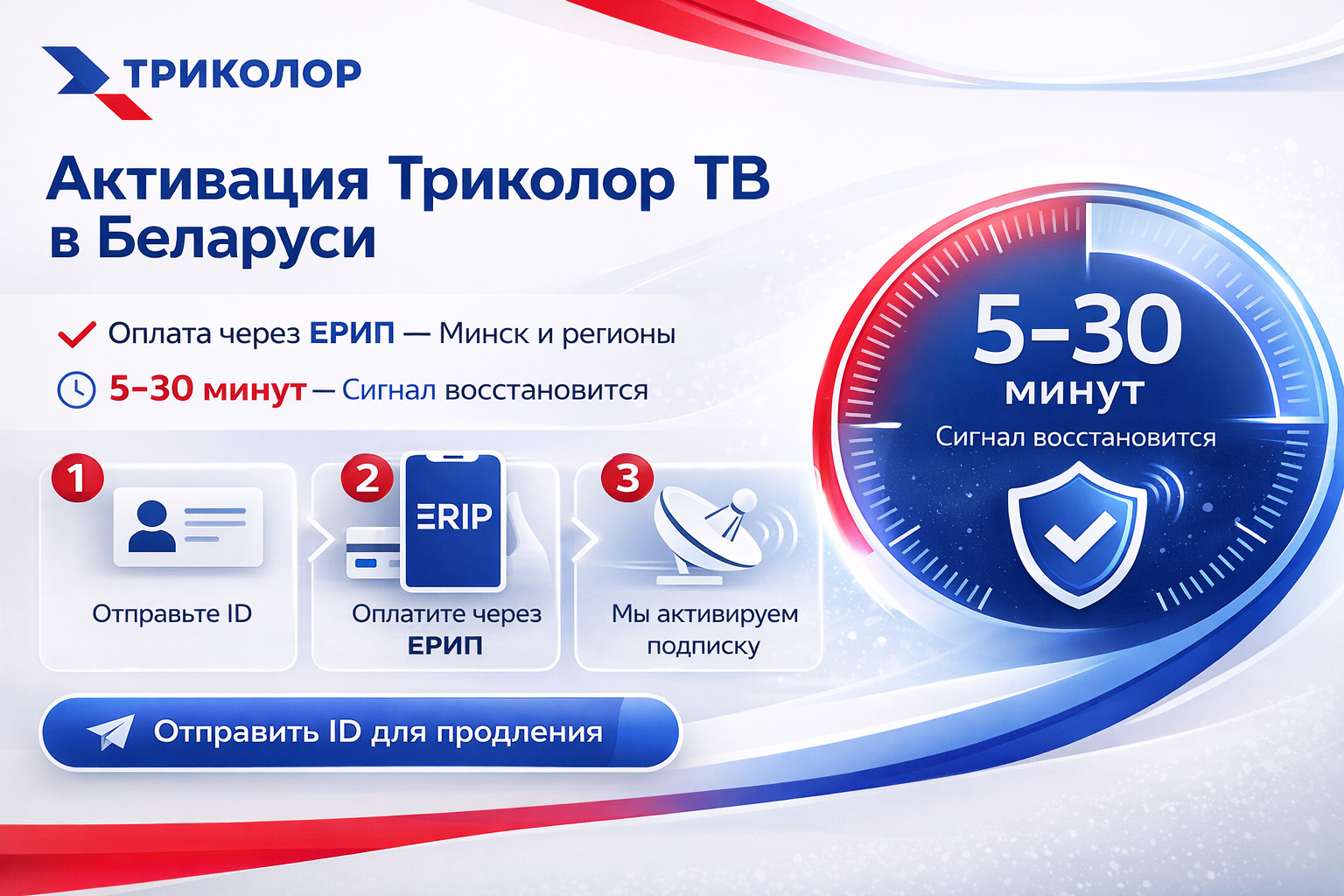 Активация и продление Триколор ТВ в Беларуси с оплатой через ЕРИП