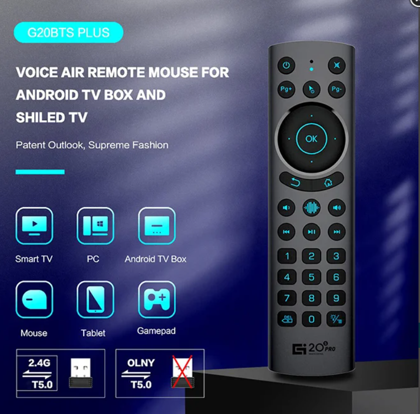 Появился универсальный пульт дистанционного управления. Имя ему G20S PRO. Крутой пульт с гироскопом и подсветкой американских долларов Помимо TV устройств, пульт способен управлять приложениями на ПК, ноутбуке, игровой консоли и даже планшете или телефоне. Главное, чтобы был разъём USB или OTG кабель.