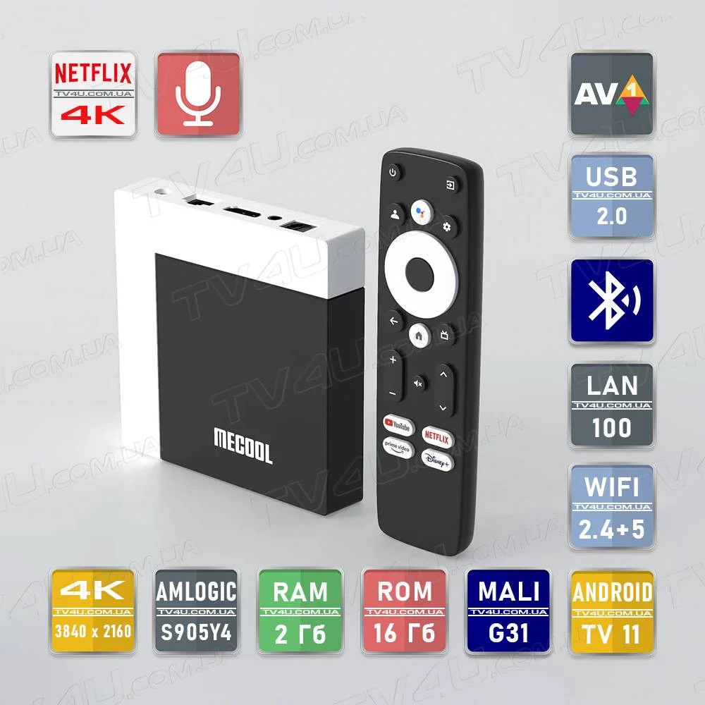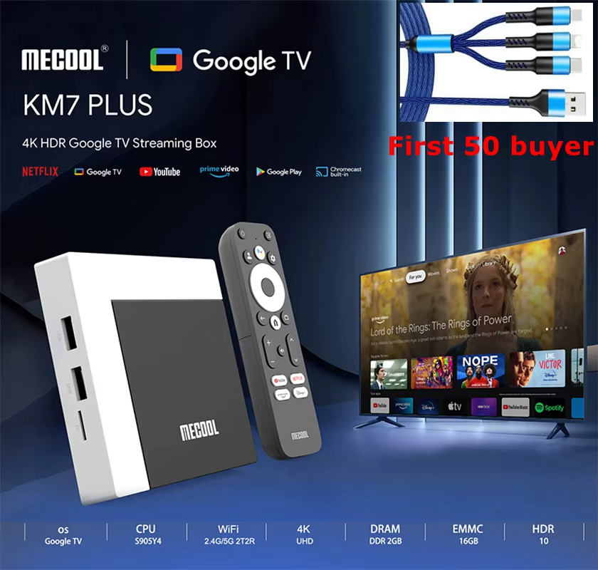 Смарт-приставка Mecool KM7 Plus 2/16GB — это современное решение для превращения вашего телевизора в полноценный мультимедийный центр. Устройство работает на операционной системе Android TV 11, что обеспечивает удобный интерфейс и доступ к тысячам приложений через Google Play Store.