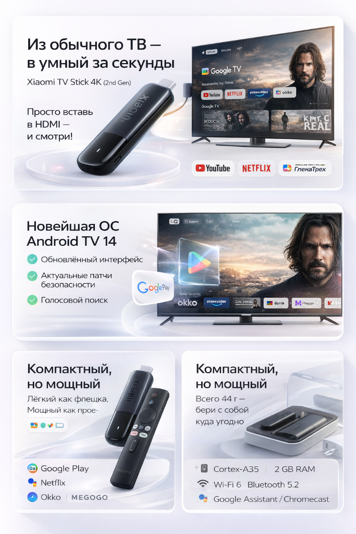 Смарт-приставка Xiaomi TV Stick 4K 2nd Gen (MDZ-33-AA) — настроена «Под ключ»