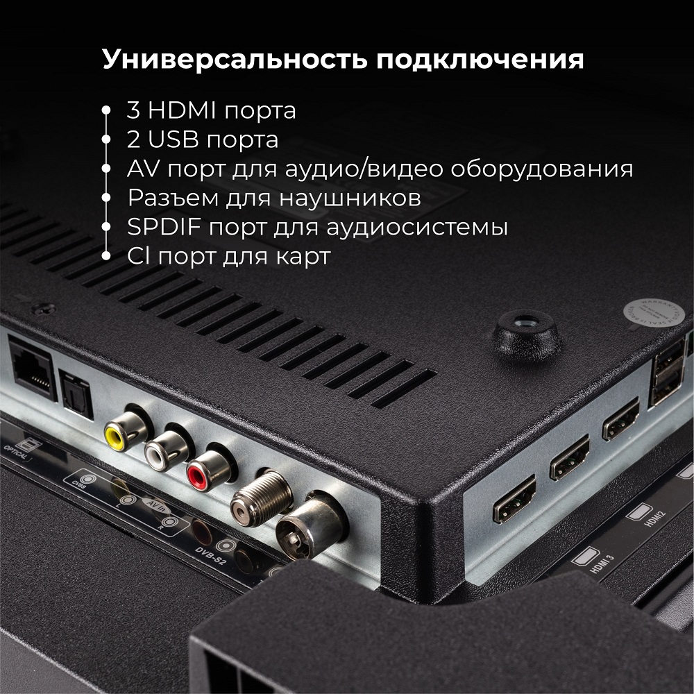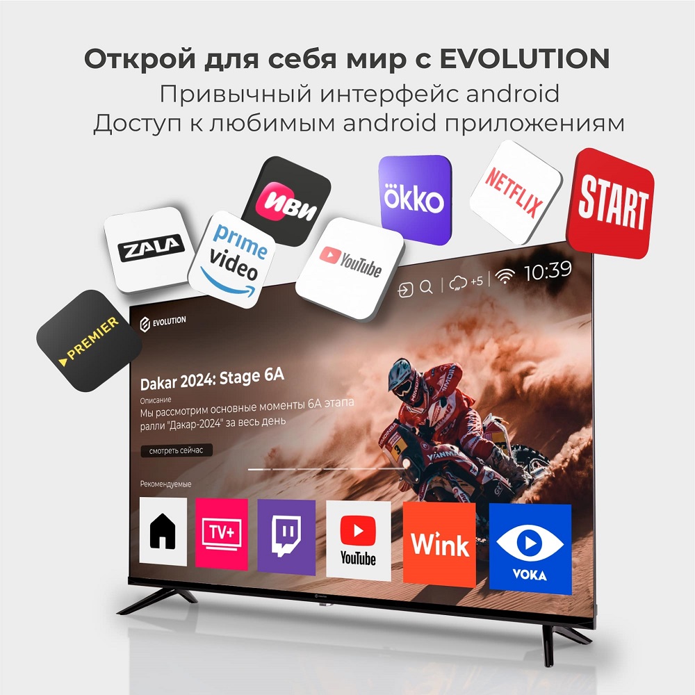 ? Он оснащен Smart TV на платформе Android TV, что позволяет наслаждаться множеством приложений и контента прямо на экране телевизора.
