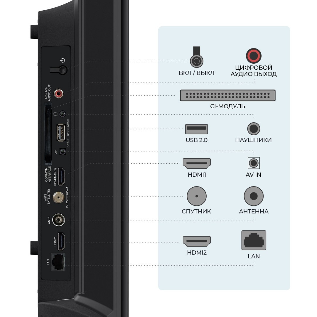 - слотом CI+ для CAM-модуля (для варианта просмотра спутникового ТВ);